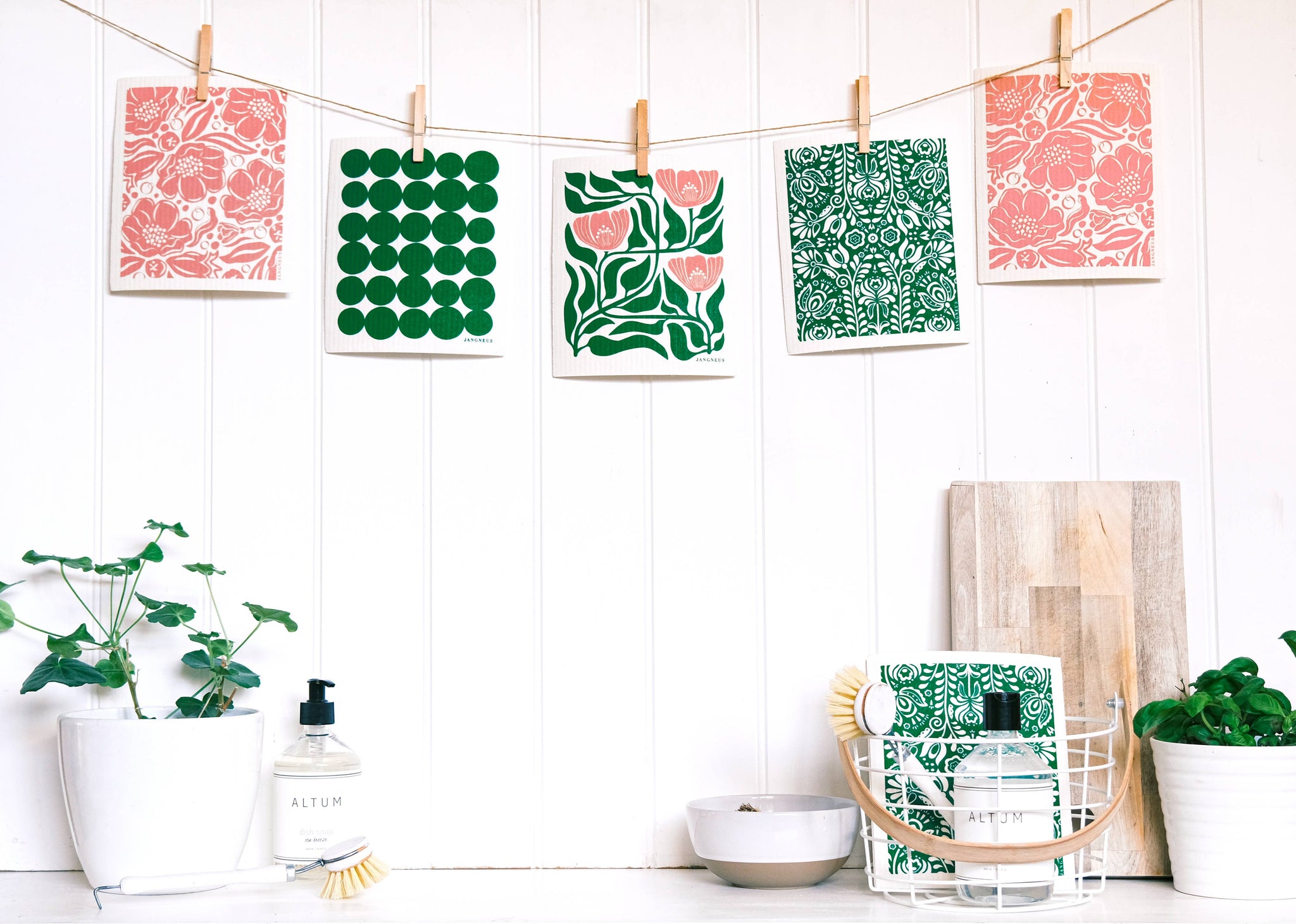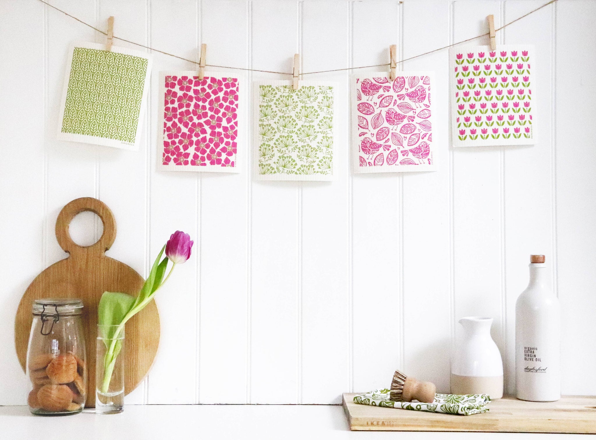 Swedish Dishcloth - Flower - Green/Pink