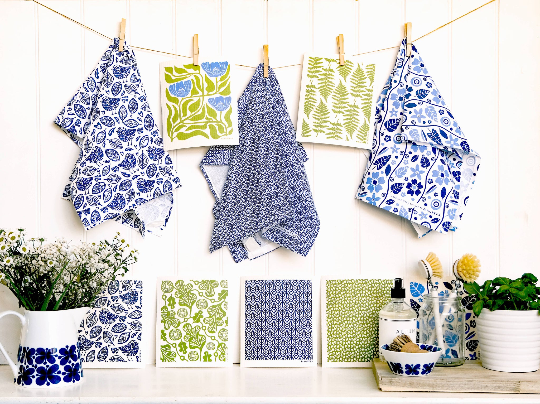 Swedish Dishcloth - Flower - Green/Blue