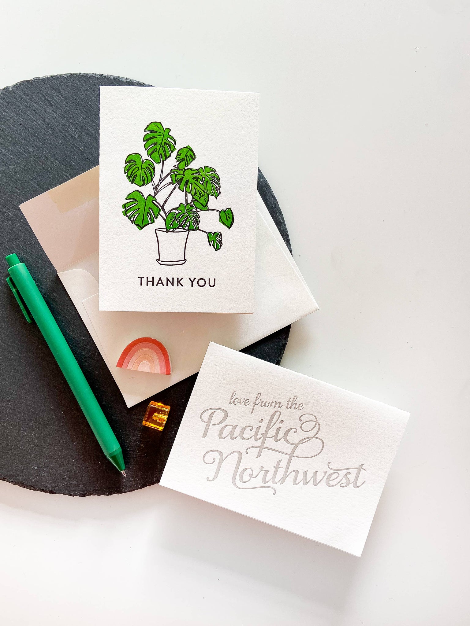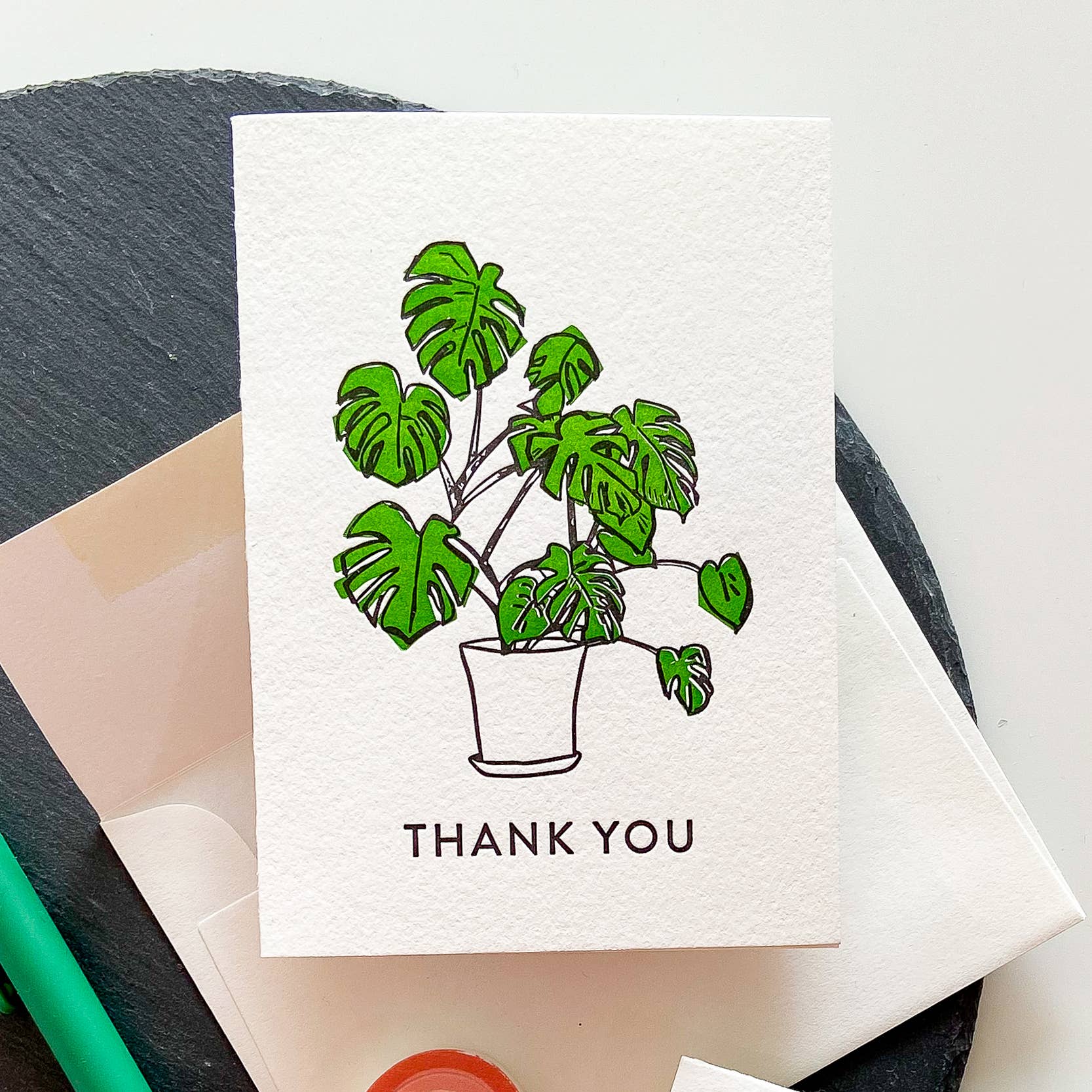 Monstera Thanks - Letterpress Thank You Greeting Card